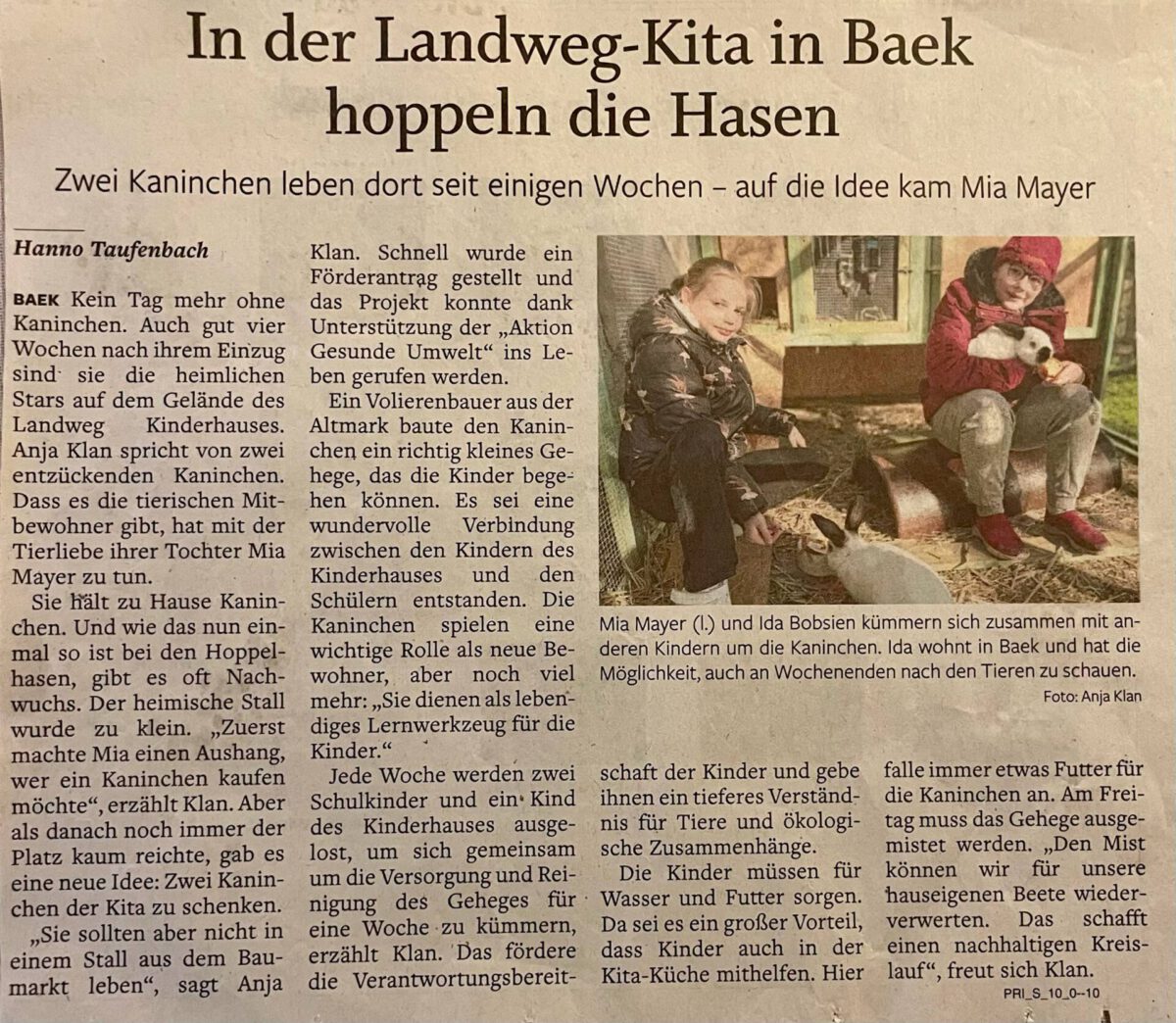 Am 13.02.24 zogen zwei Kaninchen in ein großzügiges, begehbares Gehege auf dem Landweg-Gelände ein, das wir dank der Förderung für „Gesunde Umwelt“ errichten konnten. Als Montessorihaus ist es für uns selbstverständlich, dass Kinder natürliche Abläufe und Prozesse in der Natur beobachten können, auch das Aufwachsen von Tieren. Dazu gehört die Pflege dieser, das fördert das Verantwortungsbewusstsein und die Empathie der Kinder. Im wöchentlichen Wechsel kümmern sich die Kinder des Kinderhauses und der Schule gemeinsam um unsere Kaninchen. Die älteren Kinder unterstützen die jüngeren dabei. Manchmal ist es genau andersherum. Diese Zusammenarbeit ermöglicht ein gegenseitiges Lernen. Zudem nutzen wir Gemüsereste aus der Küche für die Ernährung der Kaninchen, was nicht nur Abfall vermeidet, sondern den Kindern auch Wissen über Ressourcenschonung vermittelt.