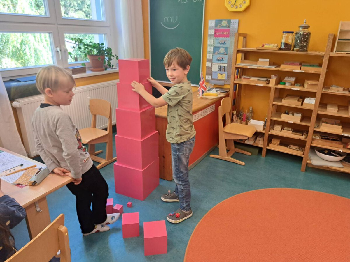 Ich verbrachte ein paar Monate als Freiwillige an der Landweg-Schule. Es war das erste Mal, dass ich in eine Montessori-Schule eintauchte, und ich wusste nicht, was ich erwarten sollte. Ich bin eine Highschool-Schülerin aus Kanada, daher war mir diese Umgebung nicht vertraut. Man hatte mir gesagt, dass die Schule im Vergleich zu dem, was ich von zu Hause gewohnt war, recht modern sei, und das stellte sich als sehr wahr heraus. Es ist faszinierend, den Lernstil an dieser Schule zu beobachten. Die Kinder erhalten zwar Anweisungen, Anleitung und Unterricht auf sehr individuellem Level, aber vor allem sind sie in der Lage, für sich selbst und ihr Lernen Verantwortung zu übernehmen. Die Kinder arbeiten oft zusammen, um sich einen Lernstoff zu erschließen, und sie achten auf die Lernziele der anderen. Die Klassen sind klein und familiär, was den Kindern die Möglichkeit gibt, Bindungen aufzubauen und sich miteinander wohl zu fühlen. Dies verleiht der Schule eine ganz besondere Atmosphäre. Der vertraute Umgang, den Schüler:innen und Lehrer:innen miteinander pflegen, überraschte mich sehr positiv. In Kanada haben Lehrer in der Regel weniger persönliche Beziehungen zu ihren Schülern, und wir neigen dazu, uns mehr auf die Arbeit zu konzentrieren als auf das soziale Bewusstsein oder das Einfühlungsvermögen, das an dieser Schule so erfolgreich vermittelt wird. Einmal in der Woche, am Freitag, kommen alle Kinder in der „Kinderversammlung“ zusammen, um zu berichten, wie ihre Woche verlaufen ist, ob sie Probleme miteinander hatten, ob ein anderer Schüler etwas Nettes für sie getan hat und vieles mehr.