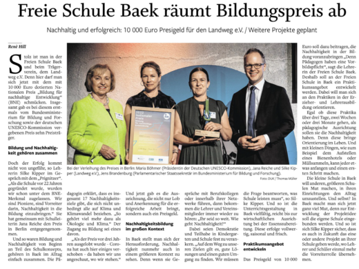 Die Auszeichnung im Mai 2022 mit dem Nationalen Preis „Bildung für Nachhaltige Entwicklung“ der UNESCO – Kommission und des BMBF würdigt unserer Arbeit